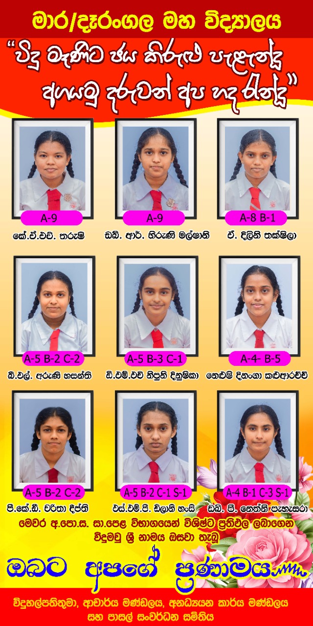 මාර/ දෑරංගල මහා විද්යාලය ක්රීඩා අංශයෙන් සෑම වසරකම පාහේ ජයග්රහණ රැසක් හිමිකර ගනී.අප විද්යාලයේ ක්රීඩා පුහුණුකරැ හශාන් නානායක්කාර මහතාගේ පූර්ණ මග පෙන්වීම යටතේ දරැවන් නිරන්තරයෙන් පුහුණු වීම් කටයුතු වල නිරත වන අතර ඉහත ජායාරූපයේ දැක්වෙන්නේ 2022 වර්ශයේ ජාතික මහා ක්රීඩා උලෙළේ පලවෙනි අදියරේ තරග ජයග්රහක ජයග්රහිකාවන් වේ.. මෙටට අමතරව සෑම වසරකම කලාප මට්ටමේ තරග පලාත් මට්ටමේ තරග ජයග්රහණ රැසකට දෑරංගල මහා විද්යාලයේ දරැවන් ලබාගනී.